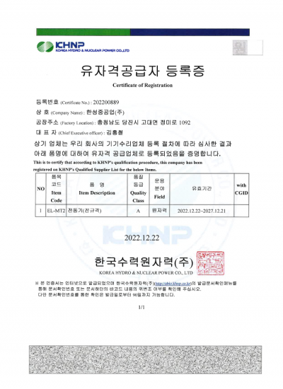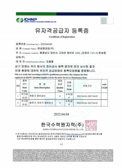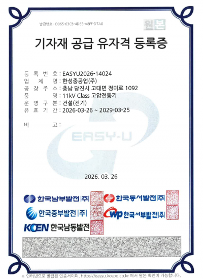 기자재 공급 유자격 등록증 - 5대발전_11kV Class