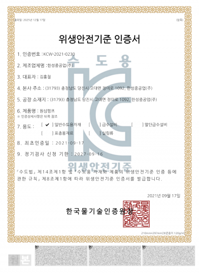 KC 위생안전 인증서(원심펌프)_양흡입