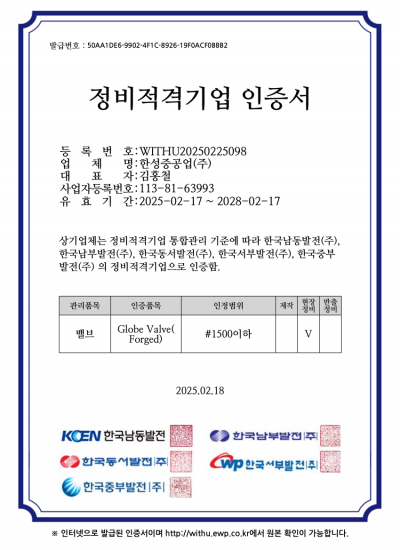 등록증/인증서/특허증 등록증/인증서/특허증 카테고리 전체등록증인증서유자격 등록증특허증 Total 72건 2 페이지 게시판 검색 56 유자격 등록증 유자격공급자 등록증 한국수력원자력(주) 55 유자격 등록증 유자격공급자 등록증 한국수력원자력(주) 54 유자격 등록증 유자격 공급자 등록증 한국수력원자력(주) 53 유자격 등록증 공급자 등록증 한전산업개발주식회사 52 유자격 등록증 정비적격기업 인증서 KOEN 한국남동발전(주) / 한국남부발전(주) / 한국동서발전(주) / WP 한국서부발전(주) / 한국중부발전(주) 51 유자격 등록증 정비적격기업 인증서 KOEN 한국남동발전(주) / 한국남부발전(주) / 한국동서발전(주) / WP 한국서부발전(주) / 한국중부발전(주) 50 유자격 등록증 정비적격기업 인증서 KOEN 한국남동발전(주) / 한국남부발전(주) / 한국동서발전(주) / WP 한국서부발전(주) / 한국중부발전(주) 49 유자격 등록증 정비적격기업 인증서 KOEN 한국남동발전(주) / 한국남부발전(주) / 한국동서발전(주) / WP 한국서부발전(주) / 한국중부발전(주) 48 유자격 등록증 정비적격기업 인증서 KOEN 한국남동발전(주) / 한국남부발전(주) / 한국동서발전(주) / WP 한국서부발전(주) / 한국중부발전(주) 47 유자격 등록증 정비적격기업 인증서 KOEN 한국남동발전(주) / 한국남부발전(주) / 한국동서발전(주) / WP 한국서부발전(주) / 한국중부발전(주) 46 유자격 등록증 정비적격기업 인증서 KOEN 한국남동발전(주) / 한국남부발전(주) / 한국동서발전(주) / WP 한국서부발전(주) / 한국중부발전(주) 45 유자격 등록증 정비적격기업 인증서 KOEN 한국남동발전(주) / 한국남부발전(주) / 한국동서발전(주) / WP 한국서부발전(주) / 한국중부발전(주) 44 유자격 등록증 정비적격기업 인증서 KOEN 한국남동발전(주) / 한국남부발전(주) / 한국동서발전(주) / WP 한국서부발전(주) / 한국중부발전(주) 43 유자격 등록증 정비적격기업 인증서 KOEN 한국남동발전(주) / 한국남부발전(주) / 한국동서발전(주) / WP 한국서부발전(주) / 한국중부발전(주) 42 유자격 등록증 정비적격기업 인증서 KOEN 한국남동발전(주) / 한국남부발전(주) / 한국동서발전(주) / WP 한국서부발전(주) / 한국중부발전(주) 41 유자격 등록증 정비적격기업 인증서 KOEN 한국남동발전(주) / 한국남부발전(주) / 한국동서발전(주) / WP 한국서부발전(주) / 한국중부발전(주) 처음 1페이지 열린2페이지 3페이지 4페이지 5페이지 맨끝 검색 검색대상 제목내용제목+내용글쓴이글쓴이(코) 검색어 필수 검색 닫기