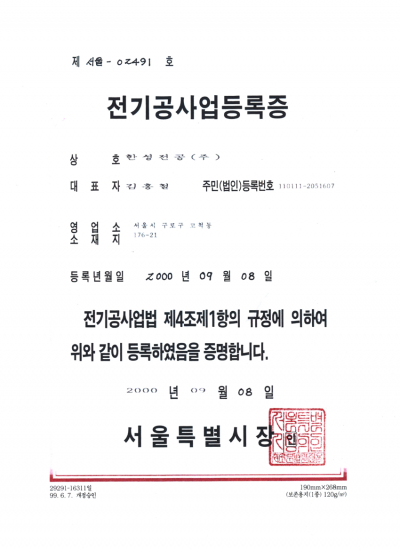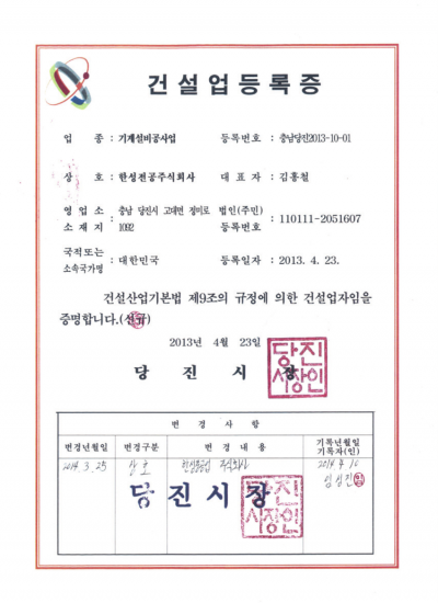 등록증/인증서/특허증 등록증/인증서/특허증 카테고리 전체등록증인증서유자격 등록증특허증 Total 72건 5 페이지 게시판 검색 8 인증서 제품 인증서 배수용 수증 모터 펌프 7 인증서 위생안전기준 인증서 위생안전기준 인증서 6 등록증 공장 등록증 공장 등록증 5 등록증 중소기업 확인증 중소기업 확인증 4 등록증 건설업 등록증 건설업 등록증 3 등록증 전기공사업 등록증 전기공사업 등록증 2 등록증 엔지니어링사업자 신고증 엔지니어링사업자 신고증 1 등록증 기업부설연구소 인정서 기업부설연구소 인정서 처음 1페이지 2페이지 3페이지 4페이지 열린5페이지 검색 검색대상 제목내용제목+내용글쓴이글쓴이(코) 검색어 필수 검색 닫기