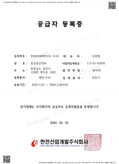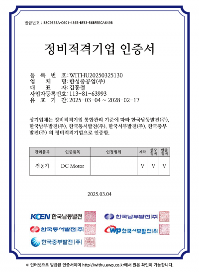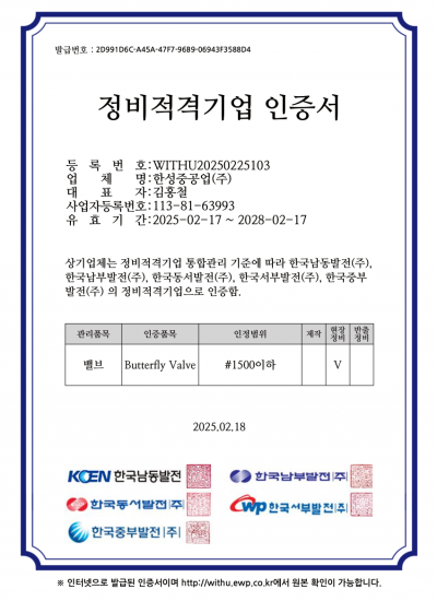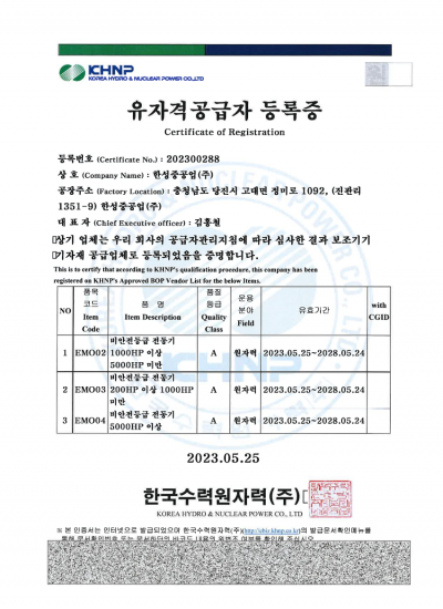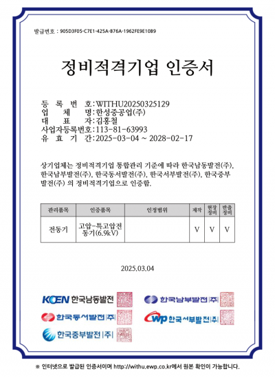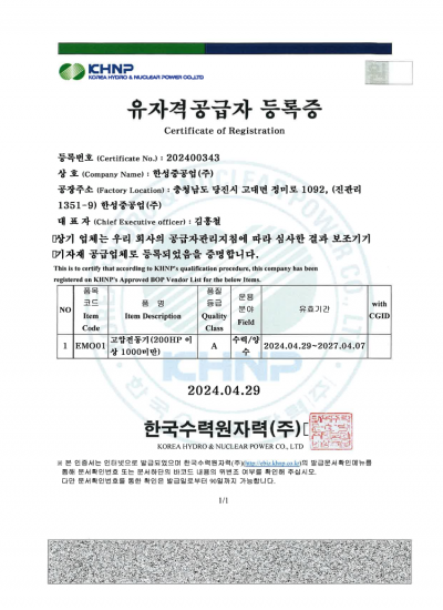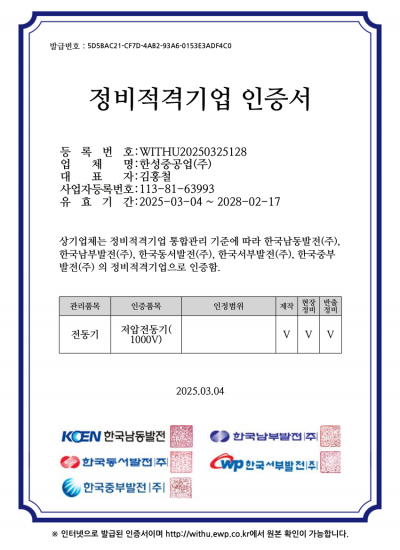 등록증/인증서/특허증 등록증/인증서/특허증 카테고리 전체등록증인증서열린 분류 유자격 등록증특허증 Total 45건 1 페이지 게시판 검색 45 유자격 등록증 유자격공급자 등록증 기자재 공급 유자격 등록증 - 5대발전_11kV Class 44 유자격 등록증 유자격공급자 등록증 한국수력원자력(주) 43 유자격 등록증 유자격공급자 등록증 한국수력원자력(주) 42 유자격 등록증 유자격공급자 등록증 한국수력원자력(주) 41 유자격 등록증 유자격공급자 등록증 한국수력원자력(주) 40 유자격 등록증 유자격 공급자 등록증 한국수력원자력(주) 39 유자격 등록증 공급자 등록증 한전산업개발주식회사 38 유자격 등록증 정비적격기업 인증서 KOEN 한국남동발전(주) / 한국남부발전(주) / 한국동서발전(주) / WP 한국서부발전(주) / 한국중부발전(주) 37 유자격 등록증 정비적격기업 인증서 KOEN 한국남동발전(주) / 한국남부발전(주) / 한국동서발전(주) / WP 한국서부발전(주) / 한국중부발전(주) 36 유자격 등록증 정비적격기업 인증서 KOEN 한국남동발전(주) / 한국남부발전(주) / 한국동서발전(주) / WP 한국서부발전(주) / 한국중부발전(주) 35 유자격 등록증 정비적격기업 인증서 KOEN 한국남동발전(주) / 한국남부발전(주) / 한국동서발전(주) / WP 한국서부발전(주) / 한국중부발전(주) 34 유자격 등록증 정비적격기업 인증서 KOEN 한국남동발전(주) / 한국남부발전(주) / 한국동서발전(주) / WP 한국서부발전(주) / 한국중부발전(주) 33 유자격 등록증 정비적격기업 인증서 KOEN 한국남동발전(주) / 한국남부발전(주) / 한국동서발전(주) / WP 한국서부발전(주) / 한국중부발전(주) 32 유자격 등록증 정비적격기업 인증서 KOEN 한국남동발전(주) / 한국남부발전(주) / 한국동서발전(주) / WP 한국서부발전(주) / 한국중부발전(주) 31 유자격 등록증 정비적격기업 인증서 KOEN 한국남동발전(주) / 한국남부발전(주) / 한국동서발전(주) / WP 한국서부발전(주) / 한국중부발전(주) 30 유자격 등록증 정비적격기업 인증서 KOEN 한국남동발전(주) / 한국남부발전(주) / 한국동서발전(주) / WP 한국서부발전(주) / 한국중부발전(주) 열린1페이지 2페이지 3페이지 맨끝 검색 검색대상 제목내용제목+내용글쓴이글쓴이(코) 검색어 필수 검색 닫기