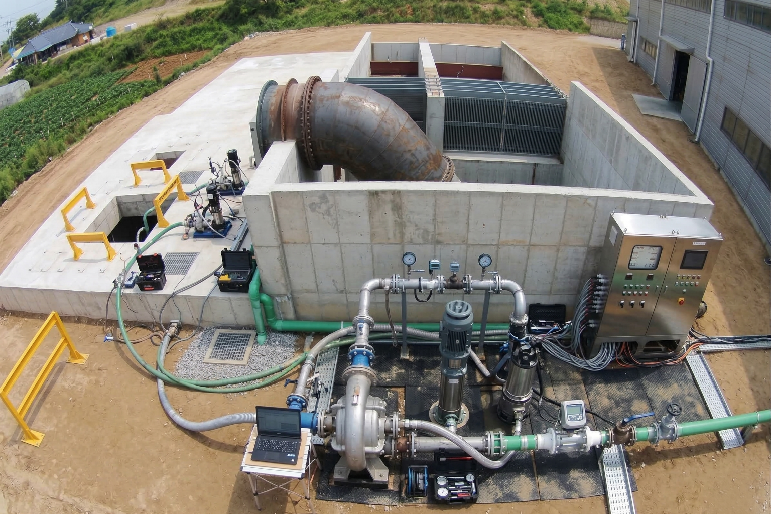 대용량 시험 설비 구축(Capacity: 40,000 m3/hr, Size : Ø2,200mm)으로 국내 최대용량 펌프 제작 및 시험라인 구축.