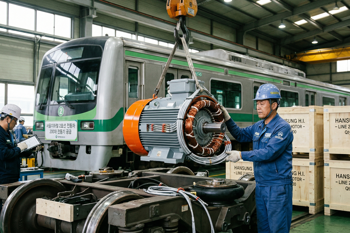 한성중공업(주)는 서울교통공사와 서울 지하철 2호선 전동차 200대에 탑재될 전동기 공급 계약을 체결했습니다.